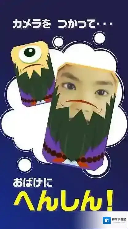 1、在拍照界面,按照“カメラを-つかって(使用相机)”的提示,使用相机拍摄面部,生成带有达摩形象的效果,然后点击箭头指向位置继续。