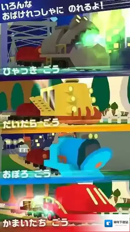 2、在火车选择界面,根据箭头指向,选择下方的蓝色火车(おぼろ-こう(胧号)),进入相关游戏环节。