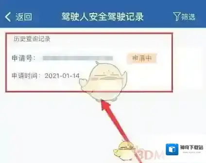 5、回到驾驶人安全驾驶记录界面,在界面中显示“申请中”。等待系统自动生成完成后,即可查看。如图: