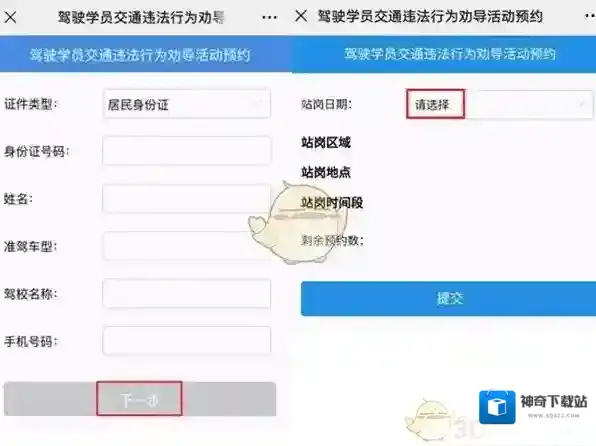 5、将个人信息填写完整,点击下一步,挑选需要的站岗日期。