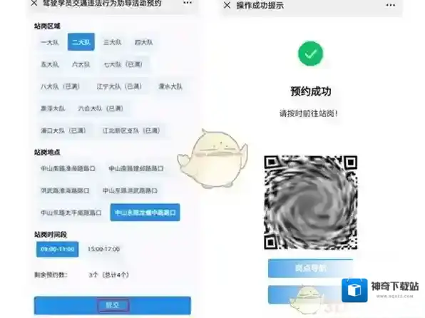 6、将站岗区域、站岗地点、站岗时间段挑选完成,最后点击提交即可预约成功。