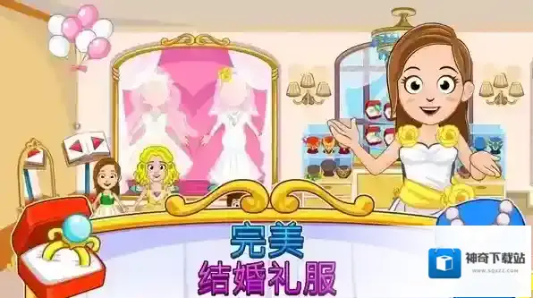 2、细节互动乐趣:在礼服店点击镜子查看穿搭效果,在蛋糕店滑动屏幕涂抹奶油,在典礼大厅点击风琴演奏音乐,让孩子感受真实婚礼的热闹氛围。