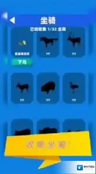 3、查看“收集坐骑”界面,通过捕获动物解锁新坐骑,更换坐骑继续冒险。