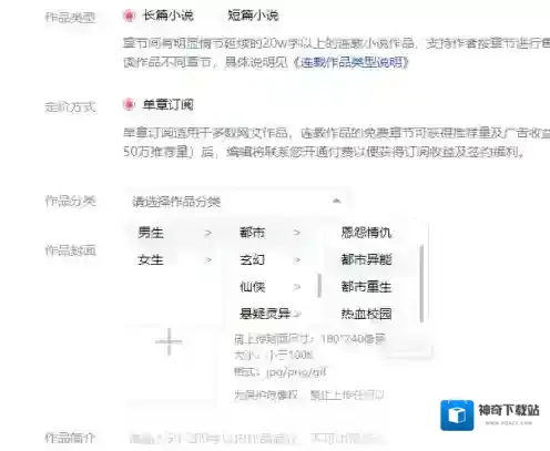 五、接着,选择作品分类。我这里选择男生-都市-都市异能。