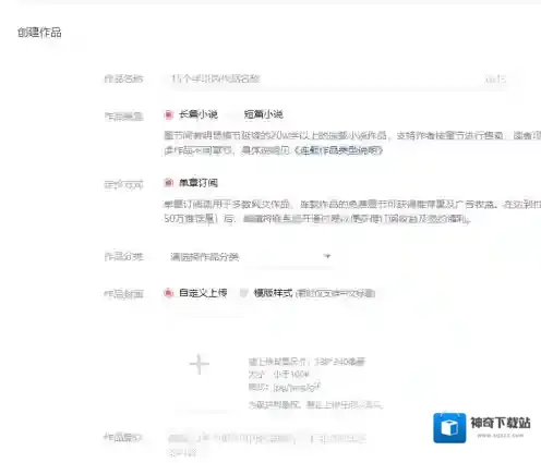 四、在这里,填写作品的名称,作品类型,定价方式。