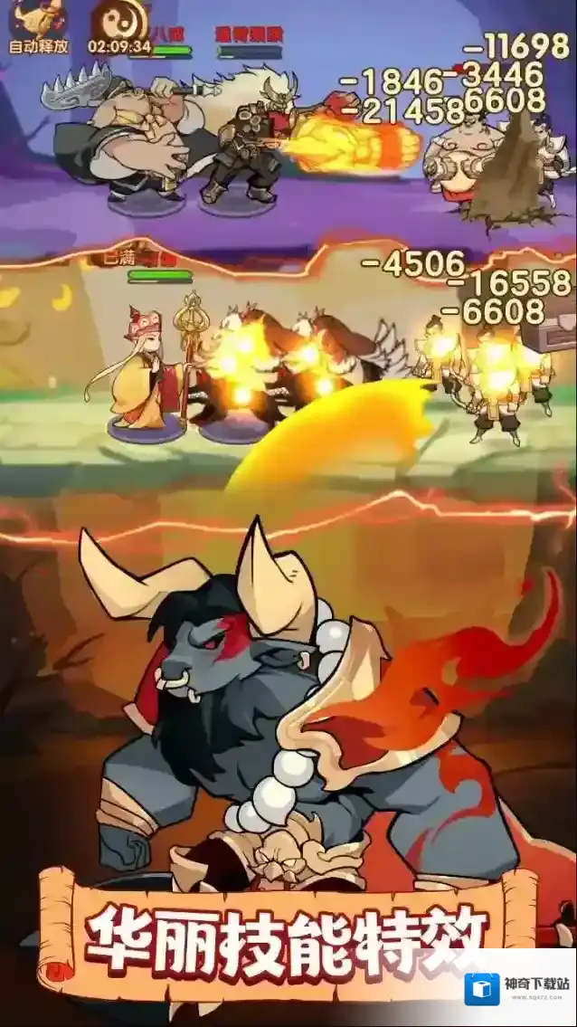 一棒一个小妖怪,一关一个大魔头,击败魔头更有宝箱从天而降。爽快通关,战斗不停,不需要点击开局结束,放置挂机一路前行。游戏退出后台也能继续闯关,宝箱奖励拿到手软!轻松放置,爽快挂机。