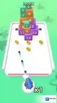 3、道具助力巧妙:推出分裂小球、爆炸小球等道具,合理使用可快速瓦解复杂方块结构,助力突破高难度关卡。