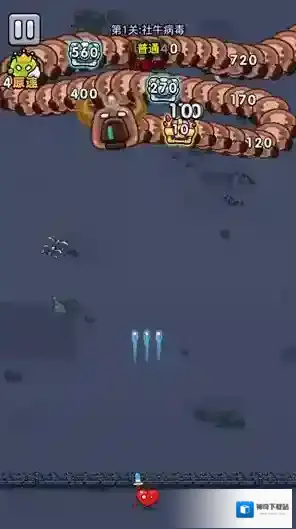 2、进入关卡后角色会自动发射子弹攻击敌人,玩家只需要左右移动控制方向即可。